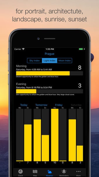 GoldenHourOneは、天気カテゴリに属するIphoneのフルバージョンプログラムであり、HanaKusovaによって開発されました。このプログラムは、チェコ語、ドイツ語、英語で利用できます。 p>